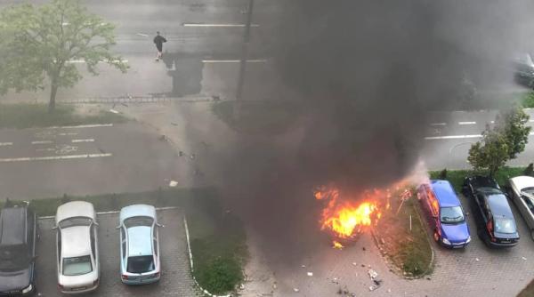 Asasinat cu bombă, în cazul de la Arad: un bolid de lux a explodat într-o parcare, șoferul a ars de viu. SRI, prima reacție