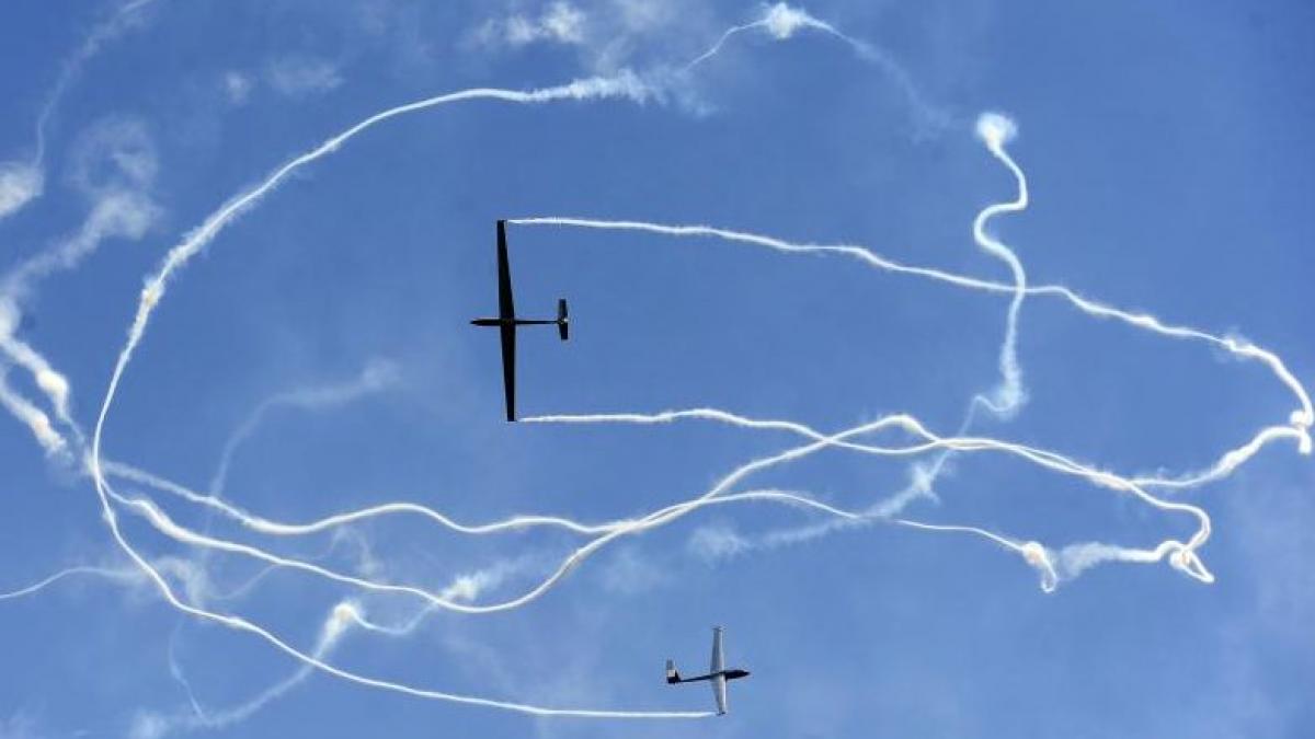Formaţia White Wings a uimit audienta cu un zbor cu planorul. Un multiplu campion şi recordmen în planorism, Mihăiţa Nicolae a zburat şi el.