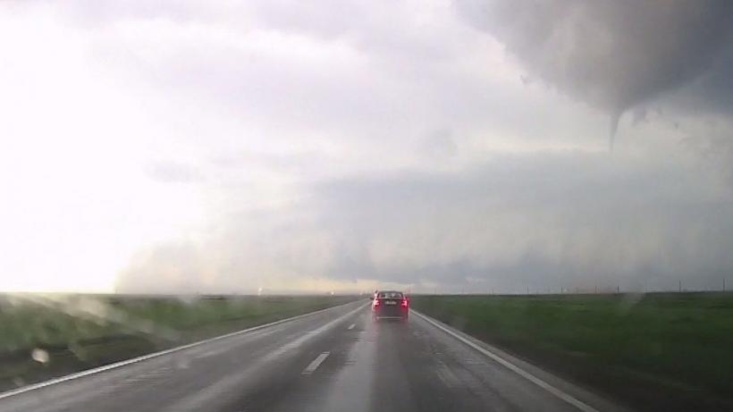 Momentul a fost surpins de camera de bord a unui şofer. Astfel, se poate vedea cum se formează fuiorul de aer, momentul în care acesta atinge pământul și antrenează în jurul lui praful și resturile de pe câmp. De asemenea, tornada se amplifică foarte repede şi ajunge la dimensiuni impresionante.