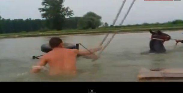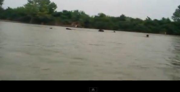 În imaginile filmate de un pescar din zonă se vede cum doi bărbaţi şi o femeie încearcă să traverseze în două căruţe legate. Curenţii puternici transforma totul într-o tragedie în câteva secunde. Asta în timp ce pescarii aflaţi la câţiva metri se amuză.