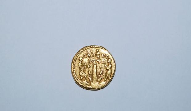Moneda care se află în centrul poveștii făcea parte dintr-un mic tezaur descoperit în 1713. S-a crezut că este o monedă romană autentică până la jumătatea secolului al XIX-lea, când experții au bănuit că ar fi putut fi produsă de falsificatorii de atunci, din cauza designului rudimentar.