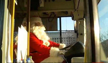 Iar călătorii care circulă cu troleibuzul lui Moş Crăciun sunt mai fericiţi că vin sărbătorile.