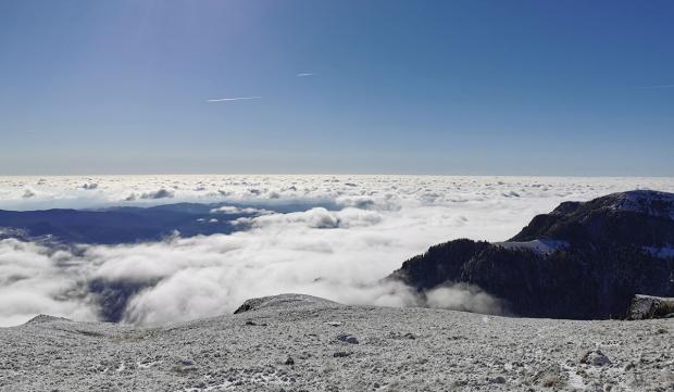''Suntem norocosi astăzi. Atât noi cât și turiști care au venit pe munte pentru că putem să asistam la ceea ce se numeste marea alpină, un fenomen meteorologic meteo spectaculos. Jos temperatura este de -3, 4 grade, sus aici este cu plus 3 grade și în din acest motiv nu se crează curenți, și vedeți și dumnevoastră, plafonul de nori este extrem de jos. Spectaculos! Aceasta este Marea alpină'', a spus Cristi Popovici, reporter Antena 3.