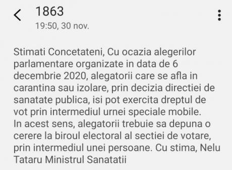 Totuși, cei aflați într-o astfel de situație trebuie să depună, de fapt, până la data de 4 decembrie, la biroul electoral de circumscripție doar o ”Cerere pentru emiterea documentelor necesare exercitării dreptului de vot prin intermediul urnei speciale de către persoanele aflate în izolare sau carantină”, potrivit stiripesurse.ro.