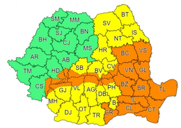 A doua avertizare meteo ANM este una de tip cod portocaliu de precipitaţii abundente şi este valabilă în intervalul 25 noiembrie, ora 10.00 - 26 noiembrie, ora 18.00.