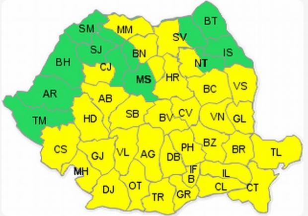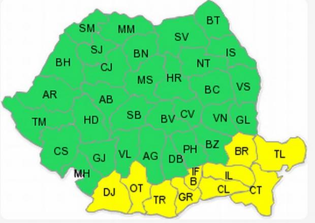 Cea de-a doua avertizare intră în vigoare tot astăzi, la ora 20.00 şi este valabilă până sâmbătă la ora 10.00.