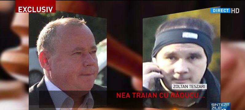 Într-o discuție cu subordonatul său Ioan Bendei, Zoltan Teszari îi spune acestuia că a fost vizitat de ”`nea Traian și Răducu” - nume ce duc cu gândul la Traian Băsescu și ginerele acestuia, Radu Pricop - care au stat la el ”până seara”.