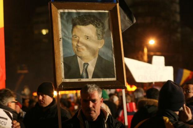 Un bărbat a purtat cu el, în timpul manifestaţiilor din noaptea de joi spre vineri, un portret al fostului dictator Nicolae Ceauşescu.