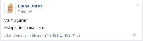 Cu toate astea, aproape de miezul nopţii, Elena Udrea a mai postat un mesaj pentru toţi admiratorii ei: