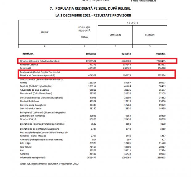 Însă, există o religie care și-a câștigat numeroși adepți de la ultimul recensământ, în rândul românilor. Este vorba despre penticostali, care sunt cu 42.000 mai mulți.