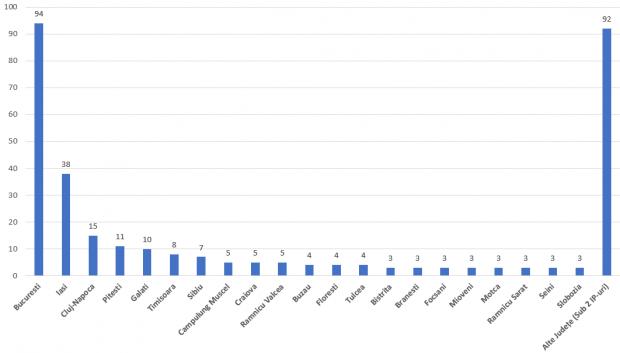 Cele mai multe adrese afectate sunt în Bucureşti, Iaşi, Argeş, Vrancea şi Cluj.