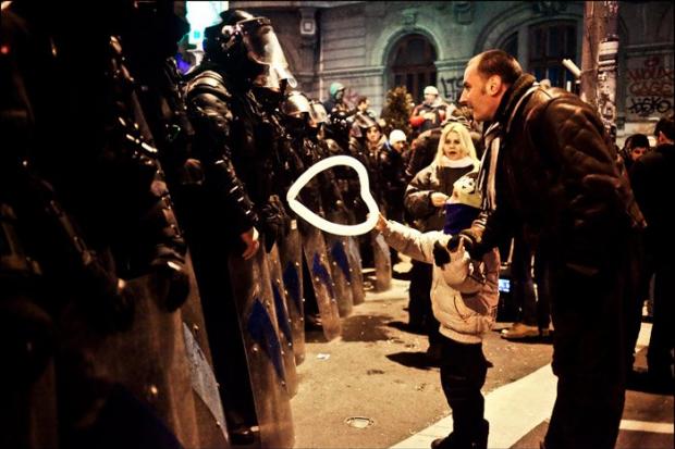 Gestul băieţelului a reuşit să exprime mai bine decât o mie de lozinci motivul pentru care oamenii sunt în stradă.