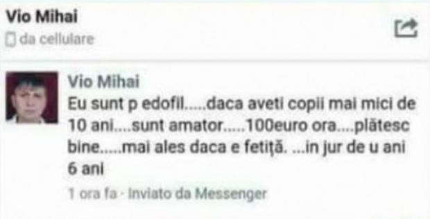 Vio Mihai, căci acesta este numele său de profil, a urmărit-o pe constănțeancă pe Facebook și a observat fotografiile cu fetița ei, de câțiva anișori.
