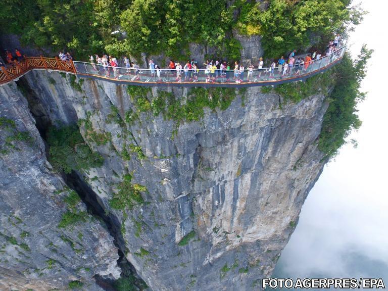 "Calea pe Dragon", aşa cum a fost numită construcţia, împrejmuieşte parcul naţional forestier Zhangjiajie din provincia Hunan.
