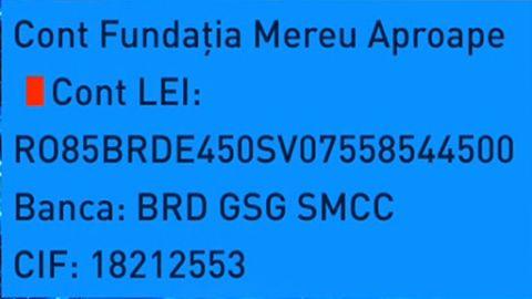 Dacă puteţi să o ajutaţi pe Costinela şi pe ceilalţi copii care au nevoie, puteţi depune bani în conturile Fundaţiei "Mereu aproape". Toate sumele vor ajunge la copiii care au nevoie de ajutor.