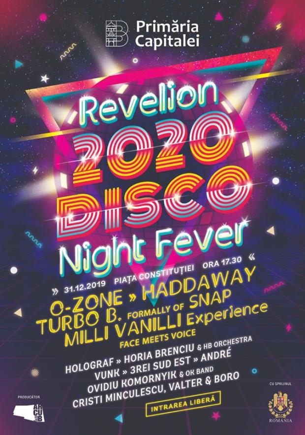 Tradiționalul concert de Revelion în aer liber din București a fost inspirat anul acesta de energia și exuberanța mișcării disco și îi va face atât pe nostalgici, cât și pe cei tineri să fredoneze unele dintre cele mai cunoscute refrene de dans din anii ’80-’90 și de la începutul anilor 2000. În cele peste șase ore de petrecere, staruri internaționale și artiști români vor aduce la „Revelion 2020. Disco Night Fever” hituri care au marcat generații întregi.