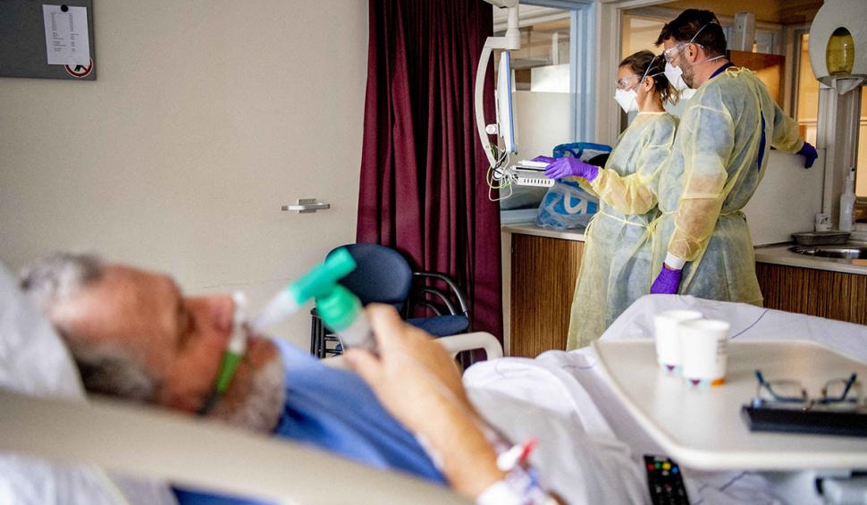 Pentru că pe Secţia de Terapie Intensivă, toate paturile sunt ocupate de alţi bolnavi, bărbatul a fost dus într-o încăpere izolată, unde i s-a pus o mască cu oxigen.