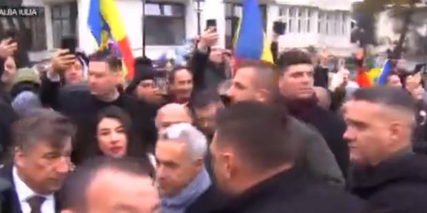 Călin Georgescu cere să plece de la Alba Iulia. Bodyguarzii îl scot din mulțime
