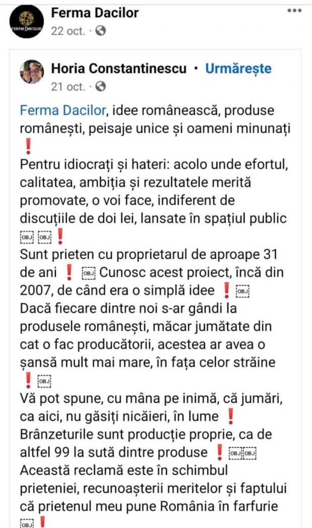 Horia Constantinescu spunea, în urmă cu două luni, că știa despre proiectul Ferma Dacilor încă din faza lui incipientă și că a fost impresionat de ce a găsit acolo.