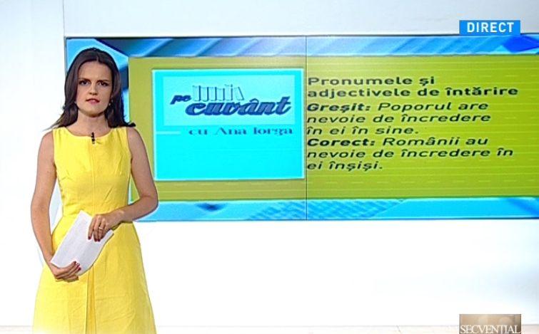 Ana Iorga a vorbit, duminică, despre cele mai recente greșeli gramaticale ale liderilor politici. Marian Vanghelie, Valeriu Zgonea și Liviu Dragnea, cu probleme de asumare, de logică și de... potrivire.