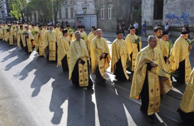 Aproximativ 3.000 de credincioşi, dar şi în jur de 700 de preoţi s-au adunat, sâmbătă, în jurul platformei de beton, înaltă de patru metri, ce constituie nivelul zero al Catedralei Mântuirii Neamului, pentru a asista la slujba ce a precedat pelerinajul de Florii către Patriarhie, conform unui reportaj Mediafax.