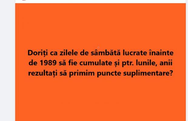 Aşa au ajuns la ideea potrivit căreia anii de vechime ar putea creşte dacă Guvernul ar accepta ca sâmbetele muncite înainte de 1989 să se adune separat la anii de vechime, iar pensia să fie, astfel, mai mare.