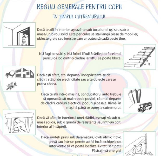 Proiectul a fost început în 4 martie 2012, fiind derulat în două etape. În cadrul instruirii elevilor, profesorii au prezentat o serie de imagini care ilustrează modul potrivit de reacţie în caz de cutremur. Suportul educaţional a fost conceput de către experţi în pregătirea populaţiei pentru situaţii de urgenţă.