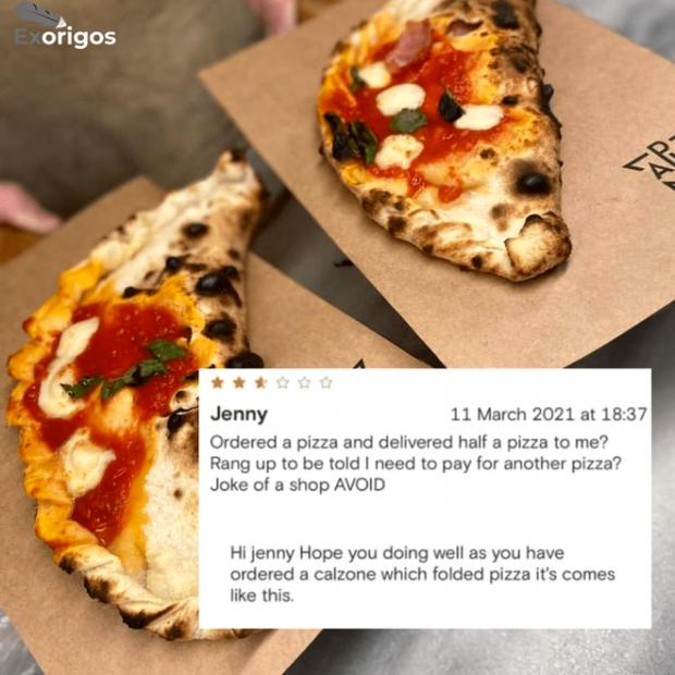 Pentru că cu o astfel de reclamație s-a trezit un restaurant. O femeie a comandat o pizza calzone și apoi s-a plâns când a primit „doar jumătate” din „pizza” ei.