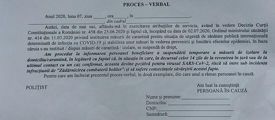 Procesul-verbal ce trebuie semnat de persoanele izolate la domiciliu, suspecte sau infectate cu Covid-19:
