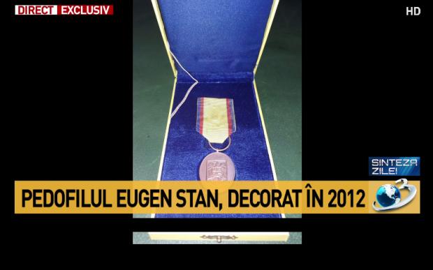 Se conferă Medalia Bărbăție și Credință clasa a III-a, cu însemn pentru civili: domnului agent șef principal de poliție Stan Ion Eugen", potrivit Monitorul Oficial/ 09 iulie 2012.