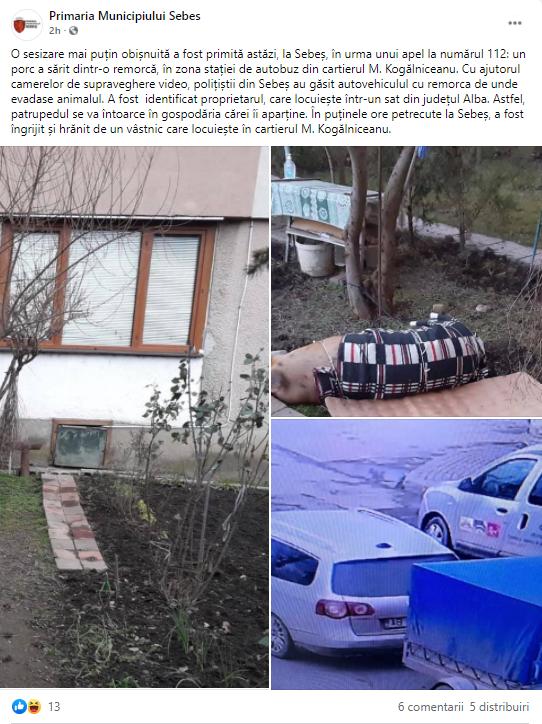 În puţinele ore cât a stat în Sebeş, a fost hrănit şi îngrijit de un vârstnic care locuieşte în cartierul M. Kogălniceanu”, au transmis reprezentanții Primăriei Sebeş care au povestit aventura patrupedului pe Facebook.