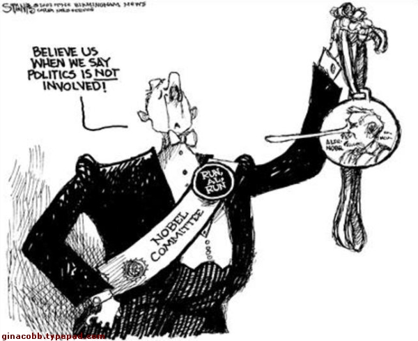 Poate nominalizarea acestor tirani, dar şi încrederea că este un factor de decizie în rezolvarea conflictului israeliano-arab, însuşi Ceauşescu a încercat să candideze. Spunem din nou: din fericire, tentativa sa a eşuat, cu toate că imaginea sa în afara graniţelor era odată chiar favorabilă. Şi pentru că tot am rămas în sfera Orientului Mijlociu, şi Yasser Arafat a primit Nobelul pentru Pace.
