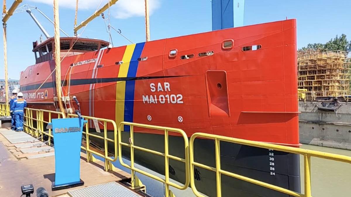 IGSU precizează că, în octombrie 2022, a fost semnat contractul pentru achiziția a două nave multirol destinate salvării de vieți și protejării de bunuri, care sunt proiectate şi construite la şantierul naval din Galaţi, de către constructorul naval Grupul Damen.