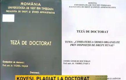 GIP a publicat mai multe pasaje din lucrări de specialitate care s-ar regăsi, fără citarea sursei, în lucrarea de doctorat a Codruţei Kovesi, care şi-a obţinut doctoratul în decembrie 2011, la Universitatea de Vest din Timişoara.