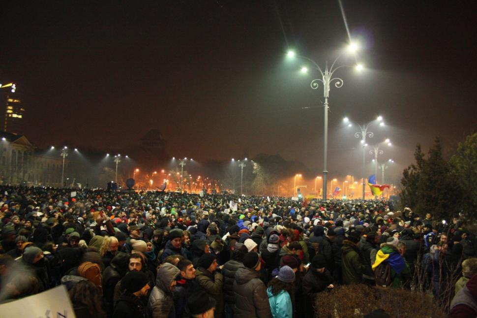 Peste 12.000 de persoane au protestat, în noaptea de marţi spre miercuri, în Piaţa Victoriei faţă de proiectele privind Justiţia adoptate în şedinţa de Guvern, conform cifrelor oficiale furnizate de Jandarmerie.