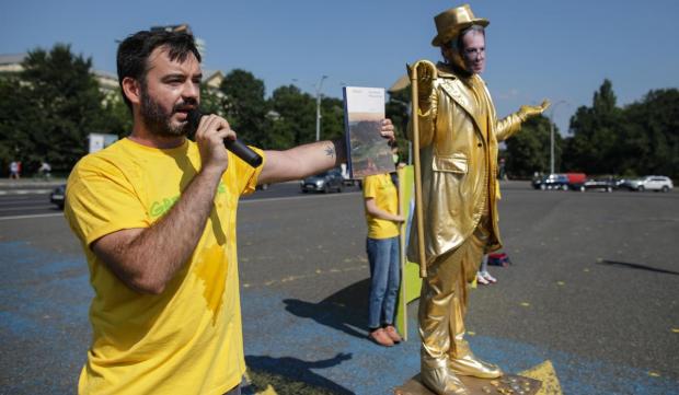 Înainte de dezvelirea statuii, Cristian Neagoe, un reprezentant Greenpeace, a ținut un discurs în care și-a exprimat revolta față de modul în care Guvernul gestionează problema Roșiei Montane.