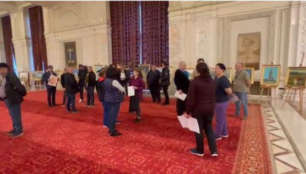 Angajații de la Camera Deputaților și Senat protestează marți, pe holurile Parlamentului, cu puțin timp înainte ca plenul celor două Camere să voteze măsurile din Pachetul 2 de austeritate.