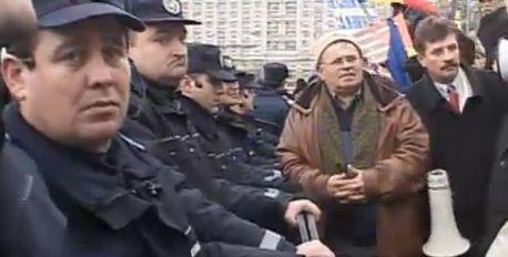 Revoluţionarii care protestează în Piaţa Victoriei din Capitală s-au îmbrâncit cu jandarmii şi au încercat să iasă din zona îngrădită special pentru miting. Unul dintre protestatari a fost reţinut de poliţie.