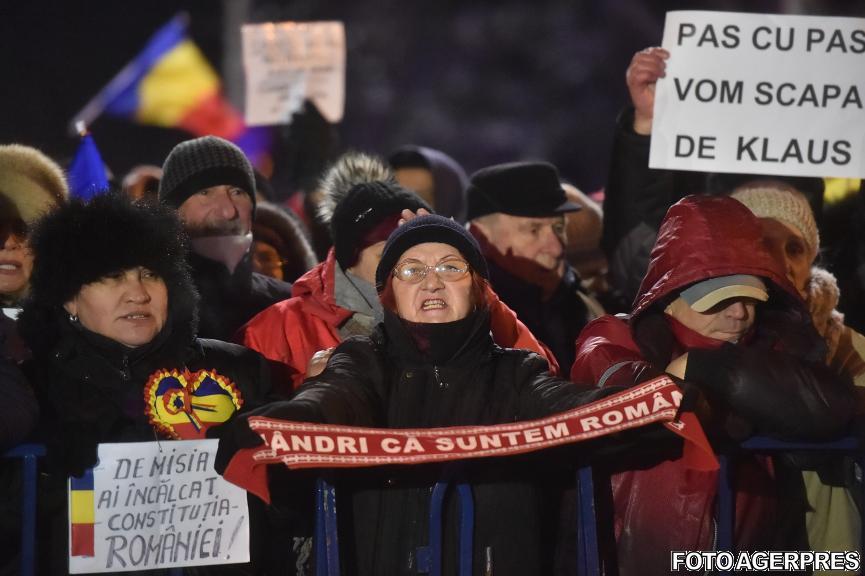 În general, oamenii din faţa Palatului Cotroceni au cerut demisia preşedintelui Klaus Iohannis şi şi-au declarat susţinerea faţă de Guvernul Grindeanu.