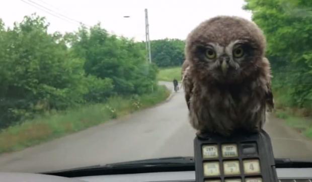 În jurul orei 14.00, într-o clădire dezafectată, a zărit la fereastră un pui de bufniţă captiv, care încerca disperat să găsească o ieşire. Imediat, a oprit maşina, a intrat în clădire şi a luat micuţul în maşină, unde i-a acordat primul ajutor.