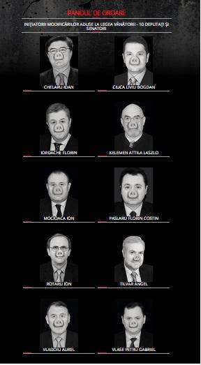 "S-a deschis sezonul de vânătoare la mistreţi-parlamentari! Sari cu puşca şi zboară-le creierii! În masă. Fără restricţii. Ciuruială!”, este îndemnul ONG-ului, care se opune Legea vânătorii, susţinută de actualii parlamentari.