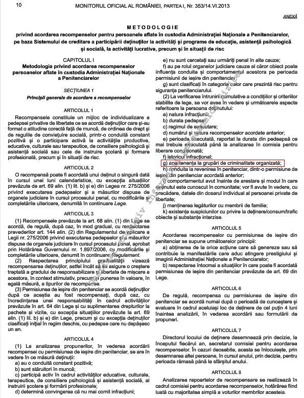 Mai exact, în Decizia de aprobare a metodologiei privind acordarea recompenselor pentru cei aflaţi în custodia Administraţiei Naţionale a Penitenciarelor (ANP) care participă la programe educaţionale, de asistenţă psihologică şi socială, „la activităţi lucrative, precum şi în situaţii de risc”, se spune astfel: