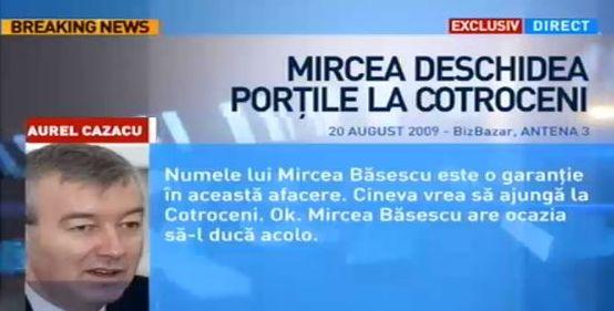 Aurel Cazacu declara, la data de 20 august 2009, că „numele lui Mircea Băsescu reprezintă o garanţie”.