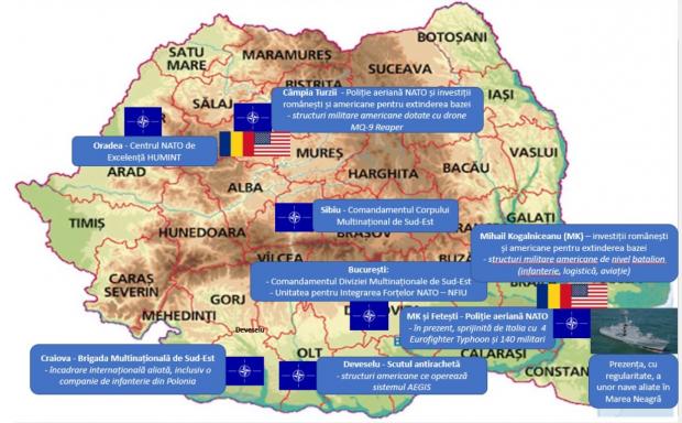 Iată harta unităților cu participare multinațională NATO de pe teritoriul României :