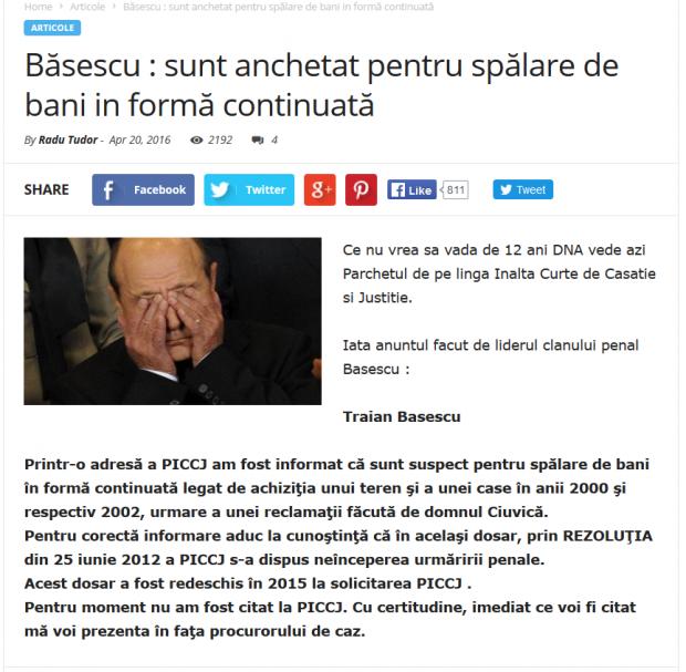 Radu Tudor a postat pe blogul său un scurt comentariu legat de urmărirea penală a fostului președinte Train Băsescu.