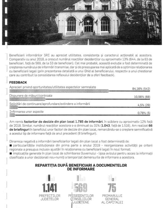 ”Potrivit raportului de activitate al Serviciului Roman de Informații pe anul 2019, trimis Parlamentului României, un procent infim de instituții ale statului dispun controale si masuri după informările privind nereguli in domeniile respective.