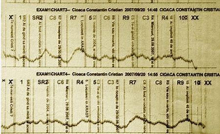 Cioacă a fost nevoit să răspundă la 10 întrebări, iar specialistul criminalist a observat că, la o parte dintre acestea, relevante cauzei, s-au „produs note specifice comportamentului simulat în traseele fiziologice”.