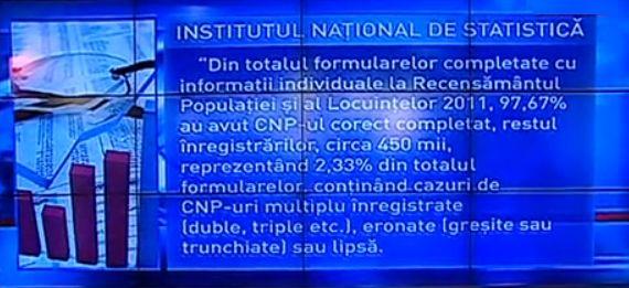 E vorba de CNP-uri înregistrate multiplu, greşite sau lipsă. Cifra reprezintă 2,33% din totalul formularelor înregistrate la recensământ.
