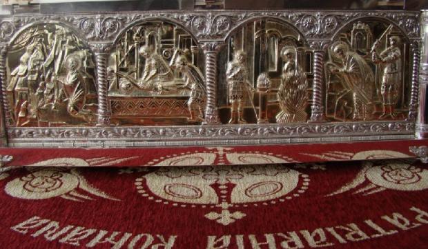 Icoana Sfantului Mina este imbracata in cizelura aurita, fiind asezata in partea dreapta a catapeteasmei celei noi, fiind adusa aici in 1847. Despre ea se arata ca a fost adusa aici de la biserica Stelea care arsese in intregime, doar la catafalcul bisericii (catapeteasma) ramanand intreaga aceasta icoana prin ocrotirea divina. Moastele Sfantului Mare Mucenic Mina au fost aduse aici in 1874, fiind trimisi emisari la Athos si-n Egipt, care au istorisit despre salvarea miraculoasa (din foc) a icoanei Sfantului.