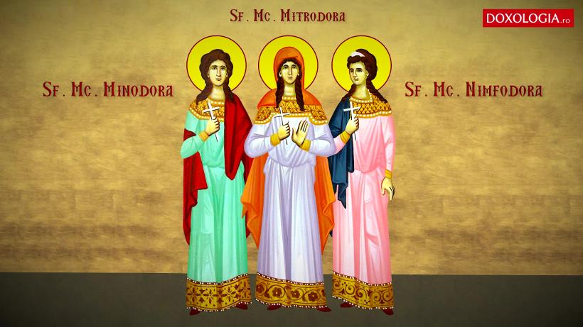 CALENDAR ORTODOX 10 SEPTEMBRIE. Sfintele Mucenite Minodora, Mitrodora si Nimfodora au trait in vremea imparatului Galeriu Maximian (305-311), in Bitinia. Aceste mucenitie au fost surori si s-au retras intr-o pustie pentru a se inchina deplin lui Hristos.